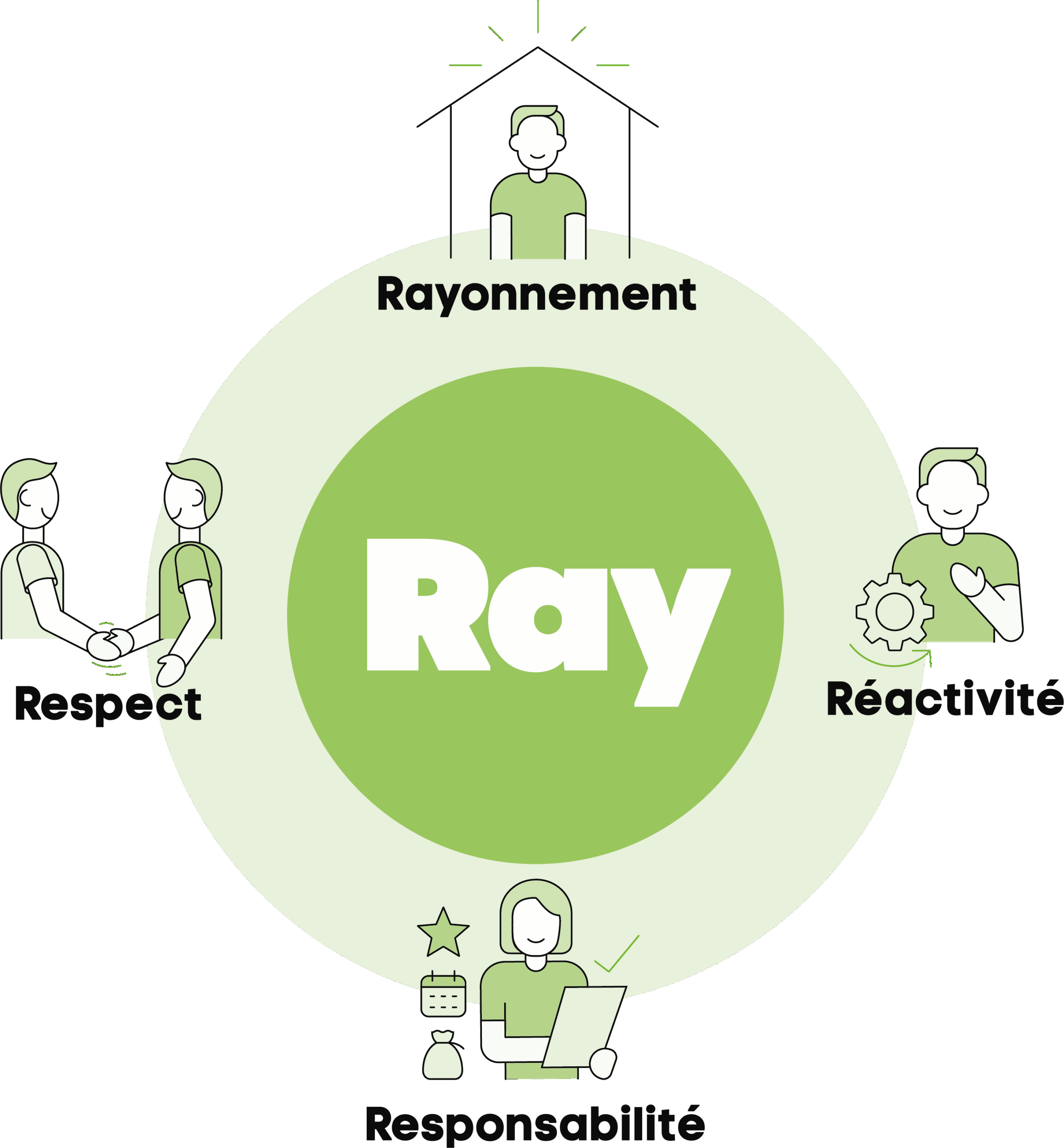Nous voulons promouvoir le rayonnement de Ray SA par notre engagement, notre culture d’entreprise et la collaboration entre nos équipes, clients, partenaires et fournisseurs