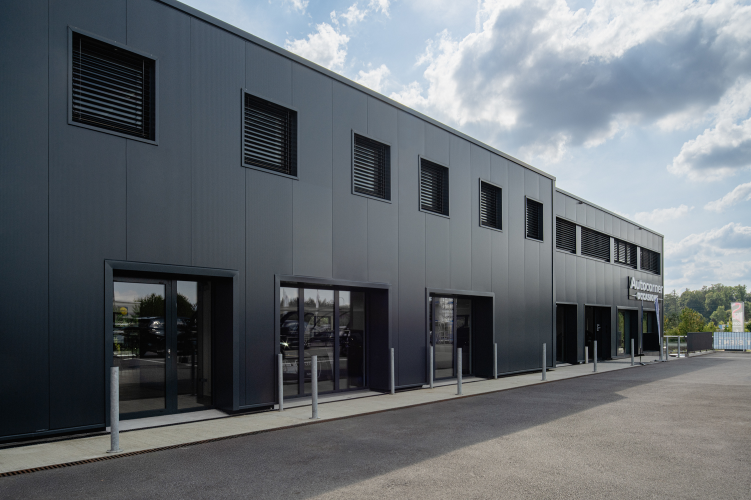 • Façade en panneaux sandwichs avec finitions en acier prélaqué