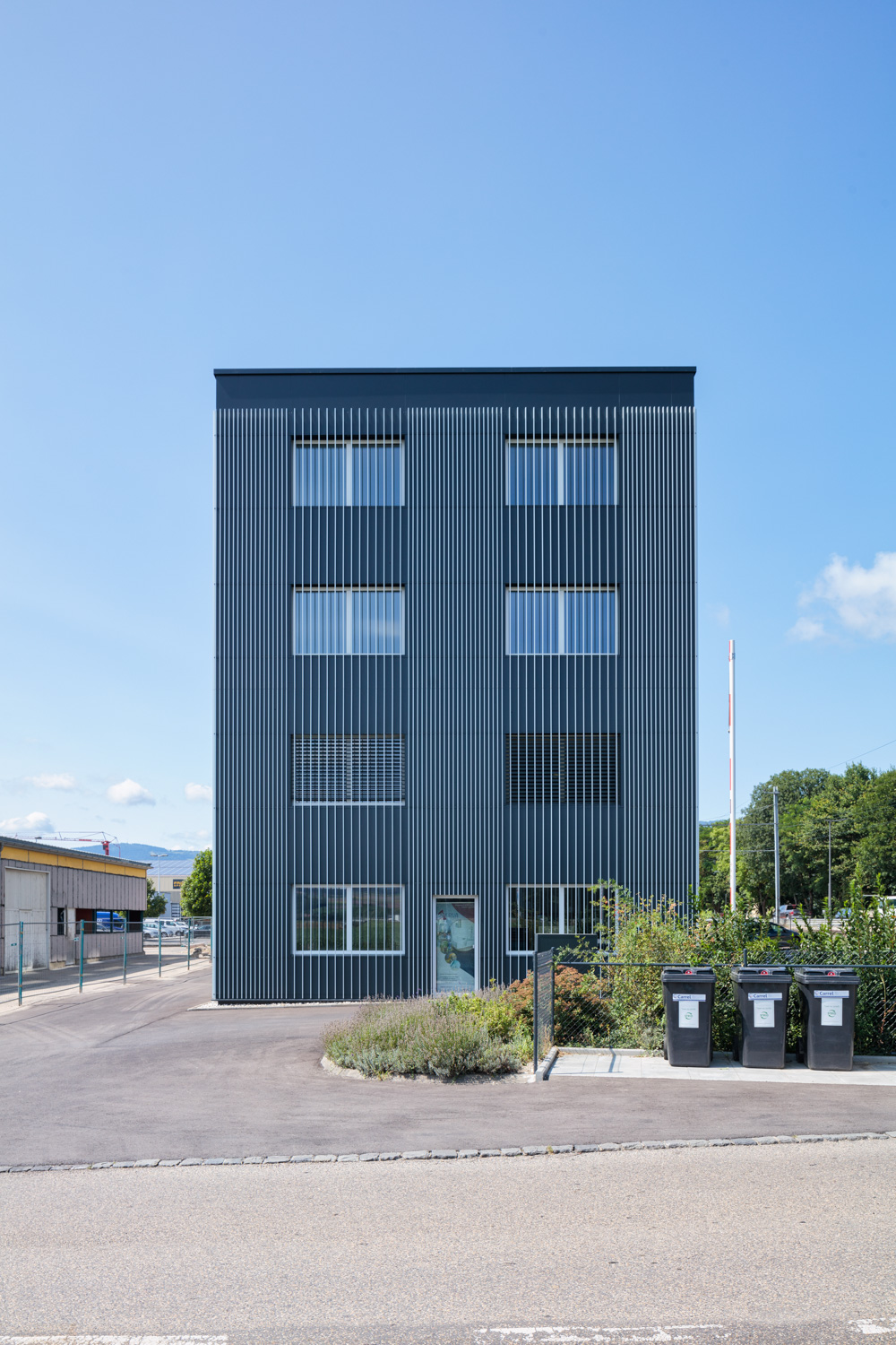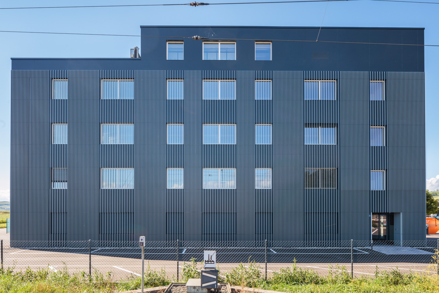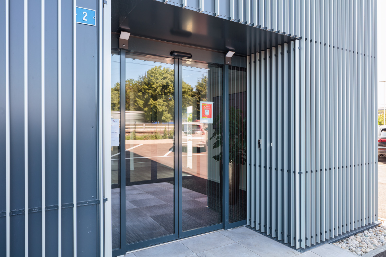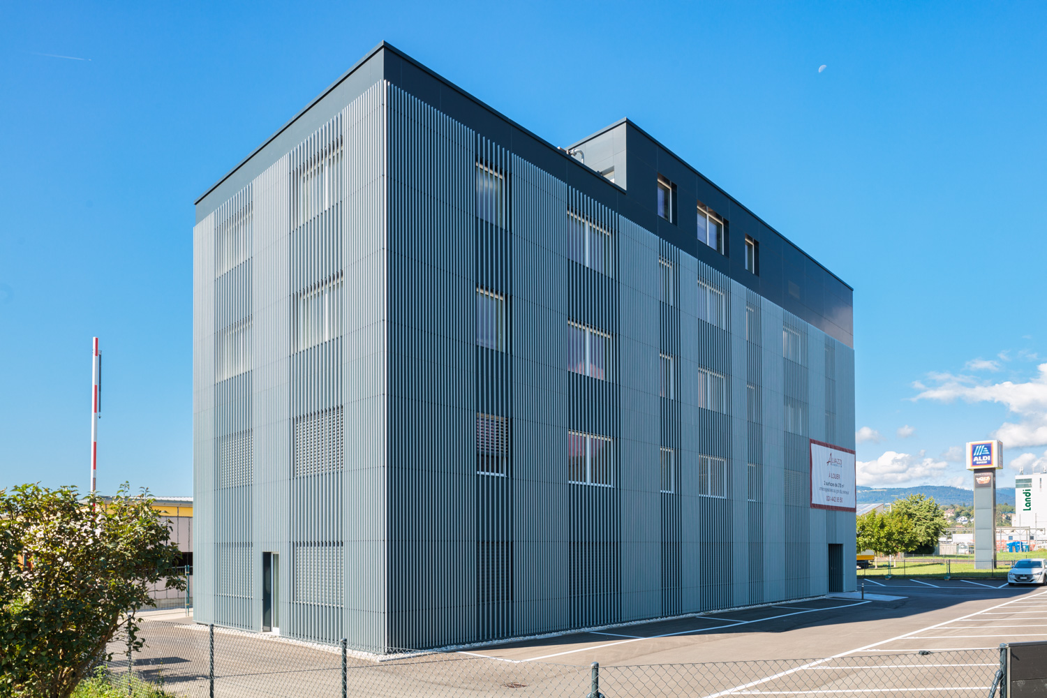 • Façade en panneaux composites et profilés aluminium ajourés