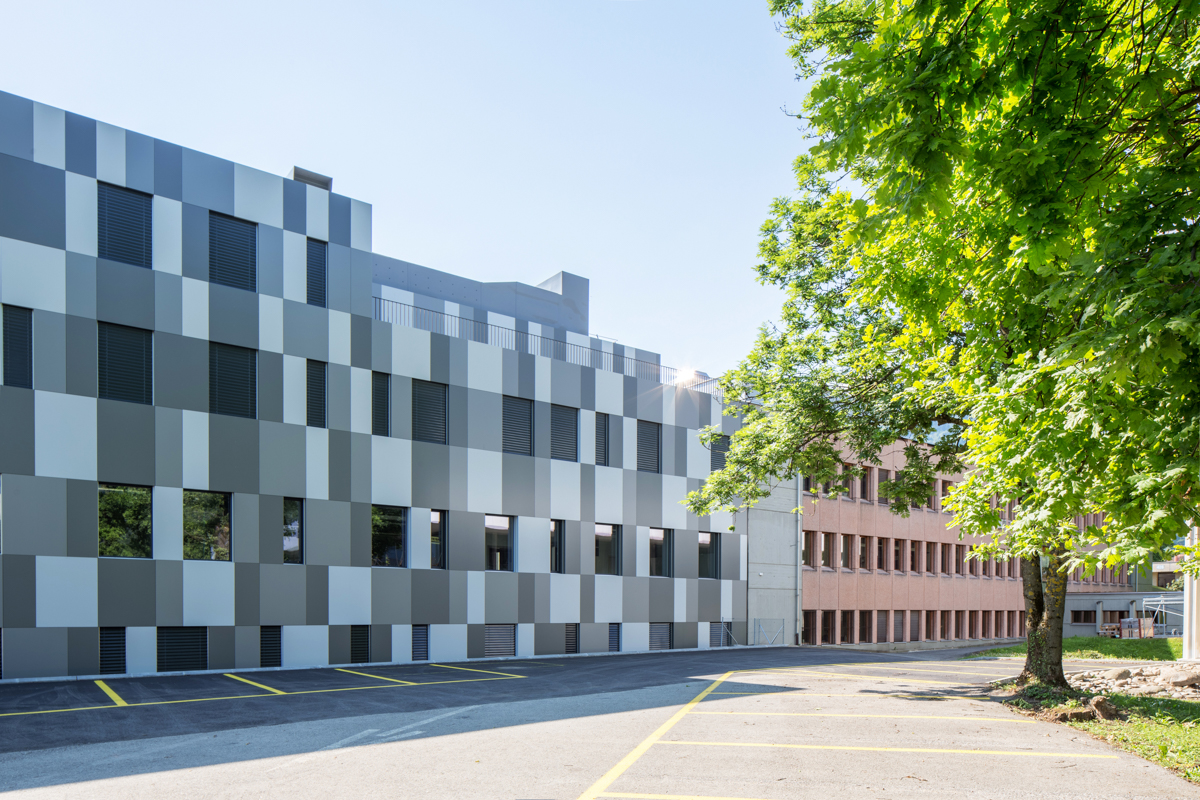 • Façade en panneau HPL, fixation visible