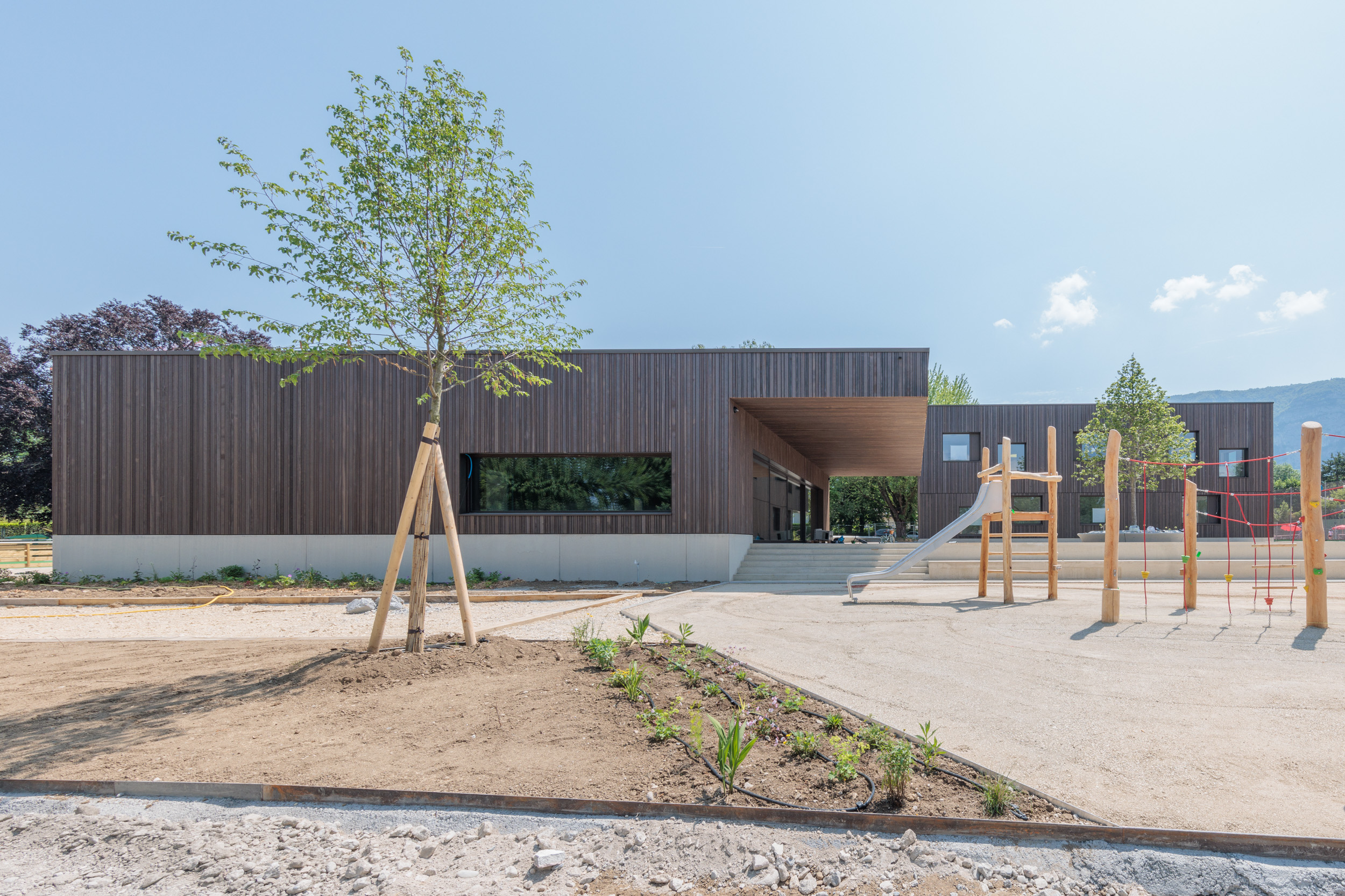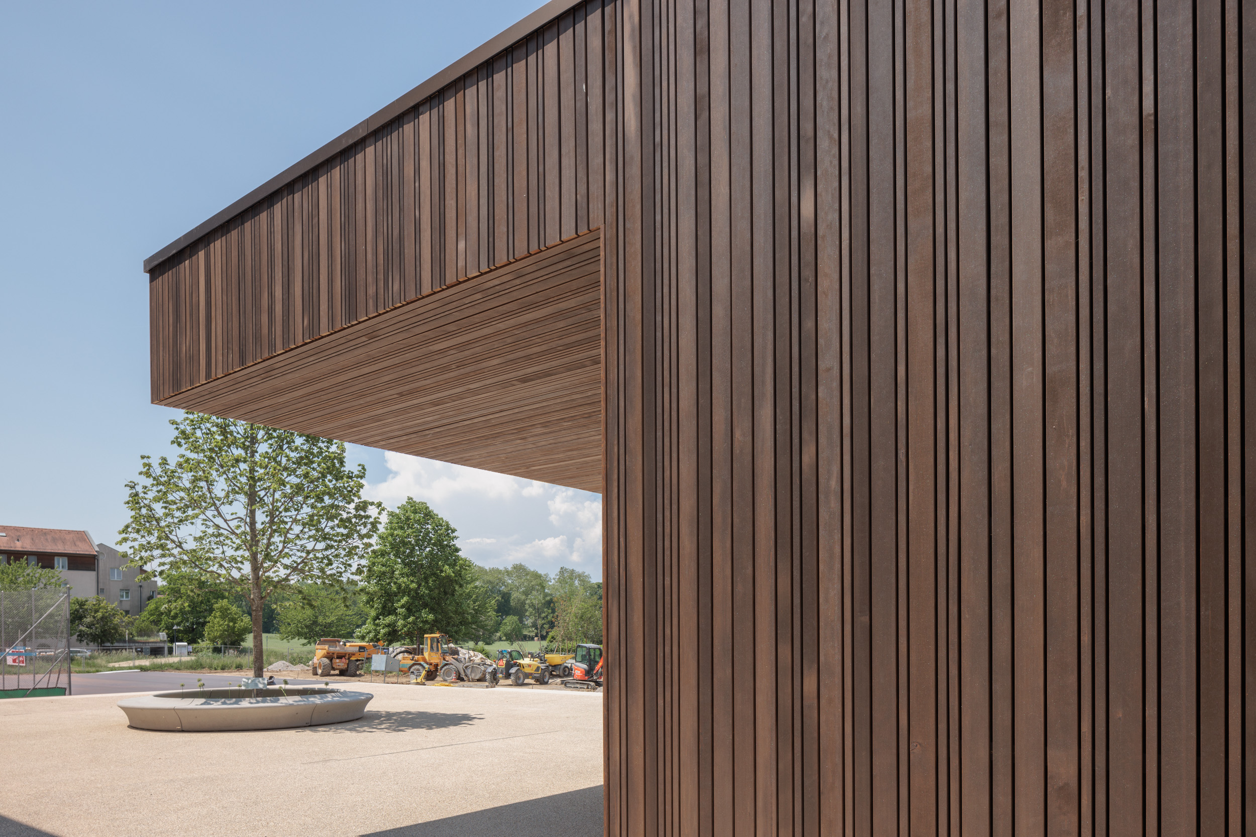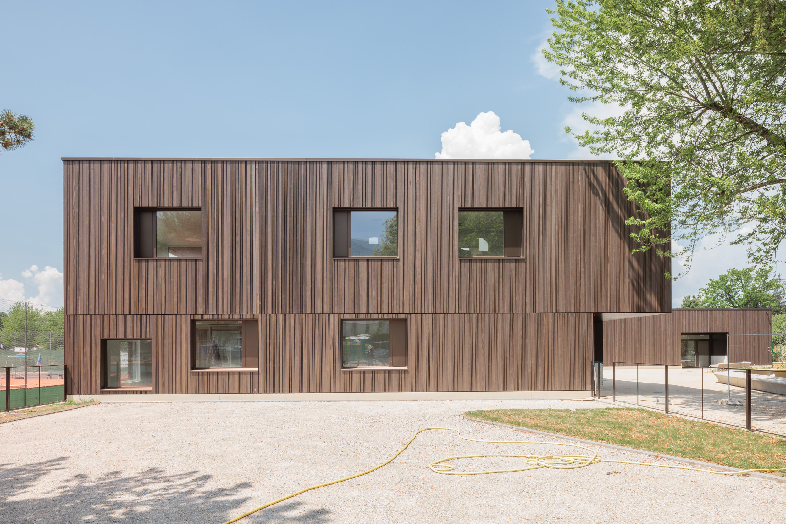 • Revêtement extérieur ventilé avec lames bois, finitions en tôles aluminium thermo-laquées